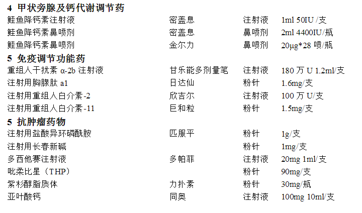 硝酸一葉秋堿注射液(H) 注射用兩性霉素B脂質(zhì)體(H) 注射用尿激酶(H) 巴曲酶注射液(H)