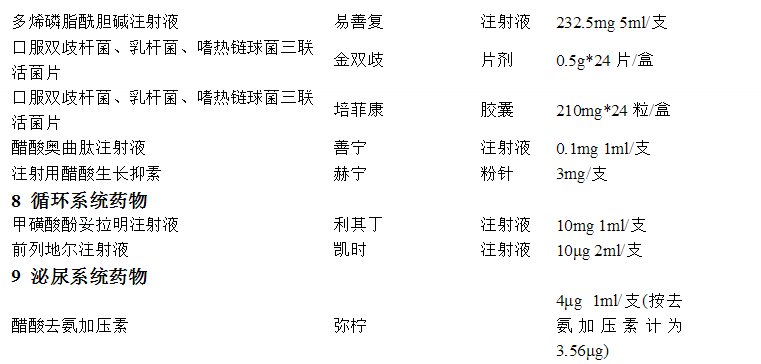 硝酸一葉秋堿注射液(H) 注射用兩性霉素B脂質(zhì)體(H) 注射用尿激酶(H) 巴曲酶注射液(H)